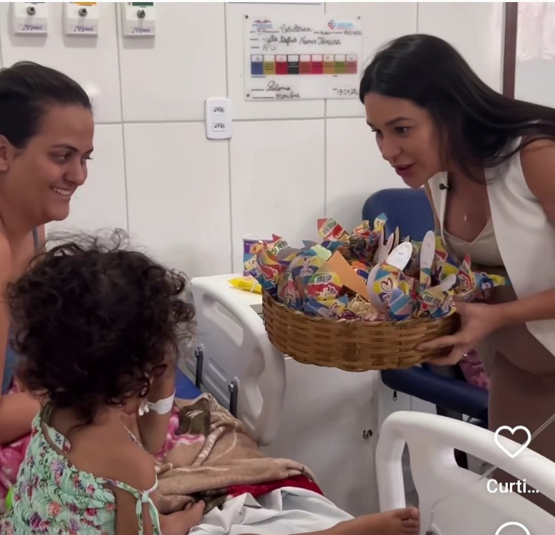 Mainha diferenciada! Crianças internadas no Hospital Municipal de Brumado recebem visita de Abiara de Fabrício (Assista).