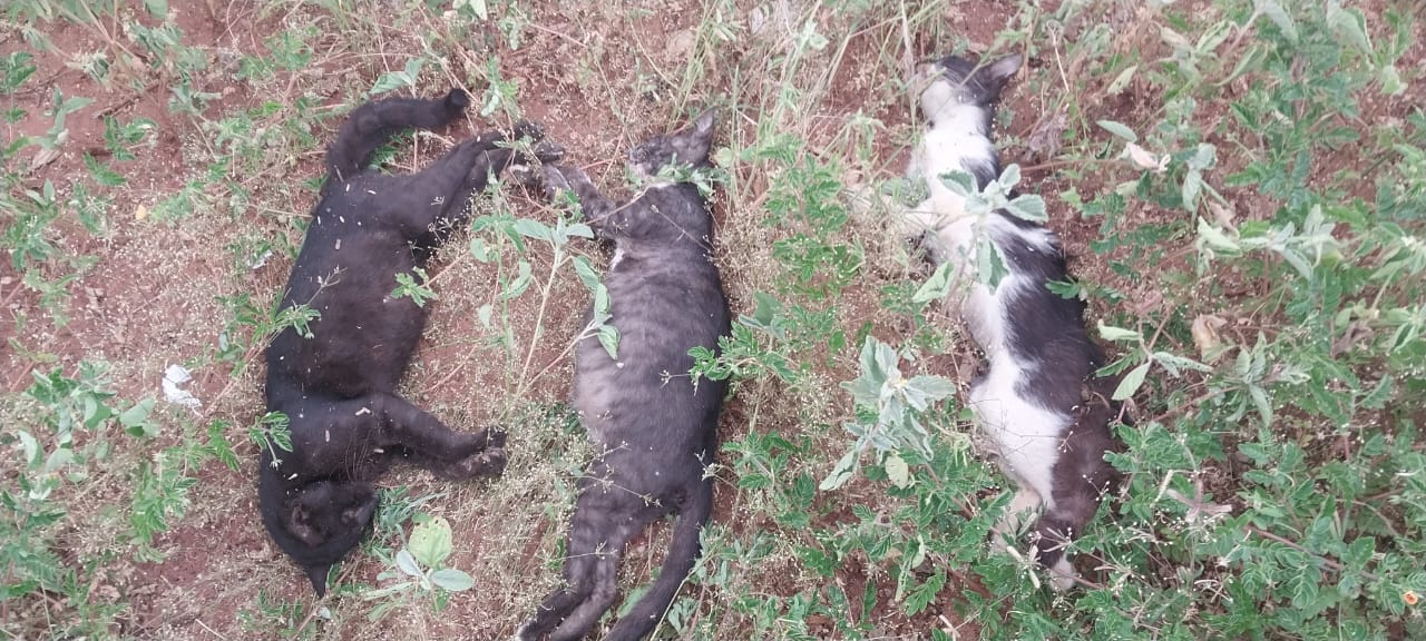 De acordo com a denuncia, três animais apareceram mortos no Bairro Apertado do Morro na manhã deste domingo (09). Segundo a informação, um dos felinos estaria “prenha” (de barriga). Não há relatos se eles tinham cuidadores ou se viviam soltos, dormindo na rua.