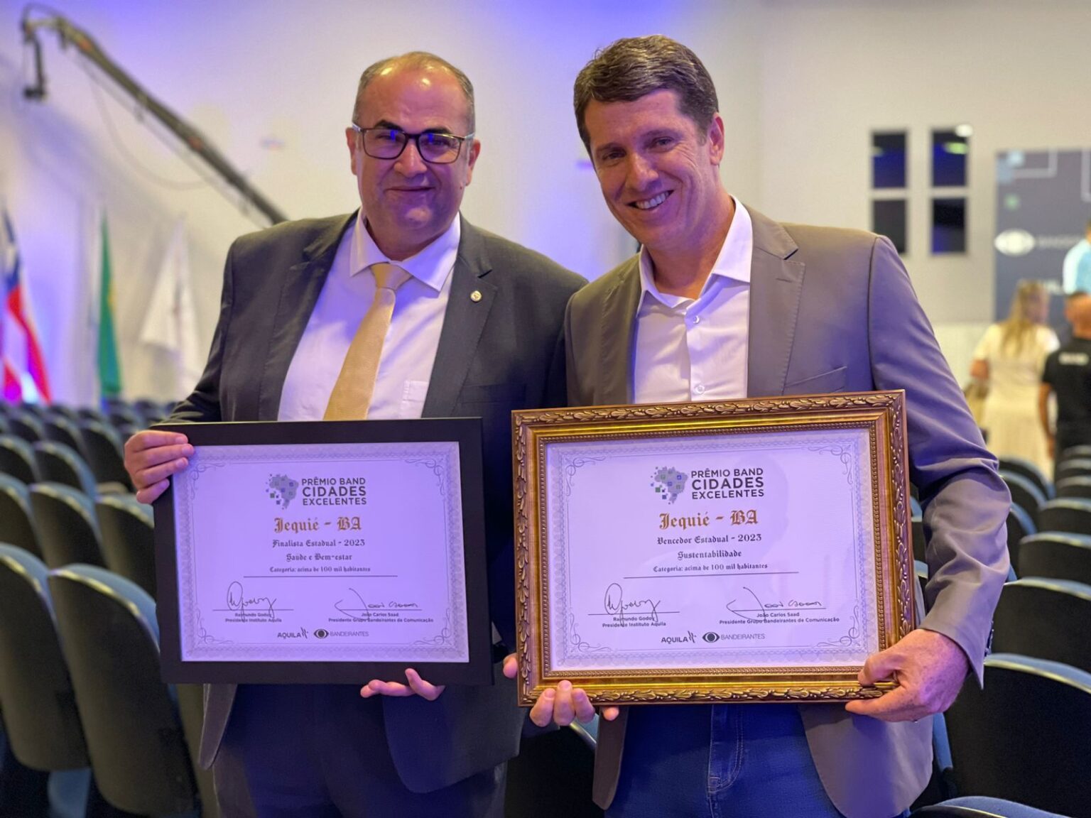 Jequié foi finalista da etapa estadual entre as cidades acima de 100 mil habitantes e levou o primeiro lugar do Prêmio Band Cidades Excelentes, na categoria ‘Sustentabilidade’ e o terceiro lugar em na categoria ‘Saúde e Bem-Estar’. O prefeito do município, Zé Cocá, nascido em Itiruçu,, acompanhado do deputado estadual, o jequieenses Hassan Iossef, estiveram na solenidade e receberam a premiação.