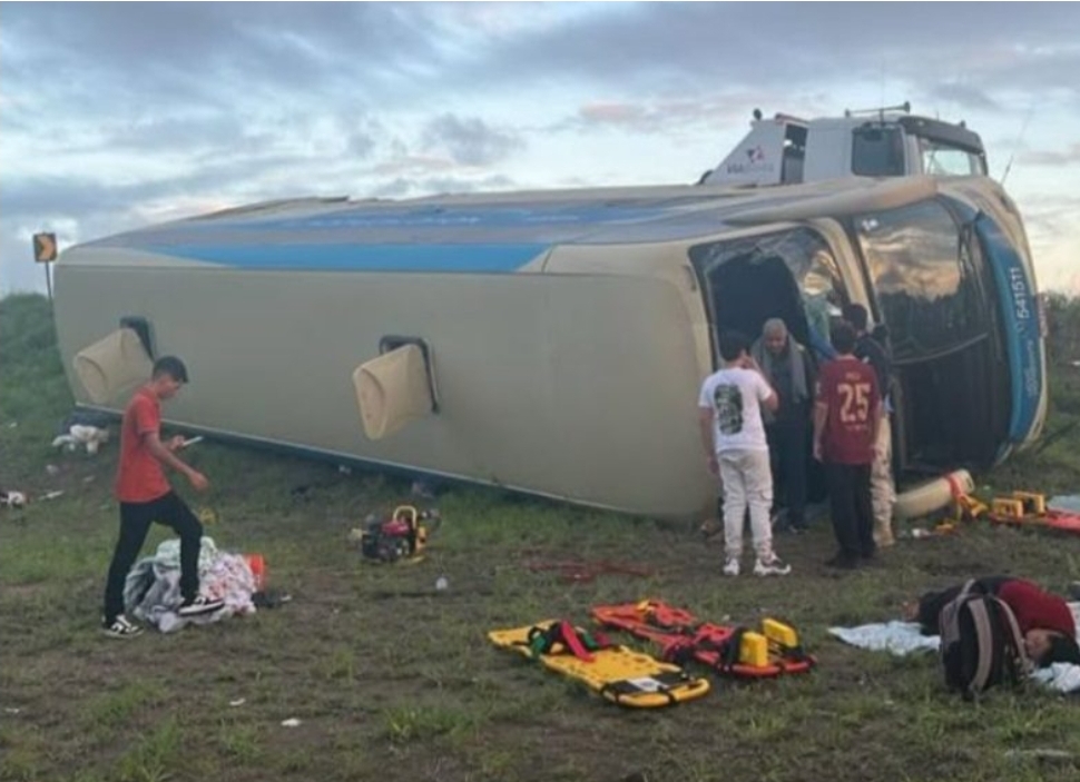 Ônibus da Novo Horizonte que fazia linha Bom Jesus da Lapa – Salvador tomba na BR-116 e deixa 8 feridos.