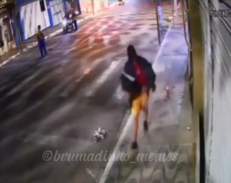 A imagem registrada pelo circuito de segurança e publicada pelo Brumadinho Memes, página parceira do Portal É Fuxico, mostra o ladrão chegando em meio ao movimento de ônibus, vans e de pessoas que já faziam sua caminhada matinal. Nem a presença de trabalhadores da Limpeza Pública fez o “Cu de Galinha” desistir de sua ação criminosa. Ele sem encobrir o rosto usando short amarelo, camiseta vermelha, uma jaqueta preta e uma mochila acaba entrando no comércio por um buraco já aberto na parte inferior da porta e após um tempo no interior da loja, o Mão de veludo sai com uma bolsa cheia de produto furtados do estabelecimento comercial. Segundo Bizu do Brumadinho, o prejuízo foi grande. (veja vídeo).