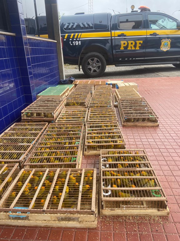 Na manhã desta quinta-feira (12), a Polícia Rodoviária Federal (PRF) apreendeu aproximadamente 1.100 aves silvestres durante uma fiscalização de rotina no km 677 da BR-116, no município de Jequié (BA). Os animais estavam sendo transportados ilegalmente em dois veículos, um Siena e um HB20, ambos abordados pela equipe da PRF.