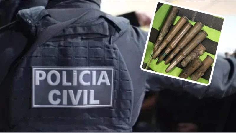 Também foram encontradas munições de revólver e fuzil, o que motivou a prisão em flagrante do homem por posse ilegal de munição. O investigado passou por exames de corpo de delito e segue custodiado, à disposição do Poder Judiciário.