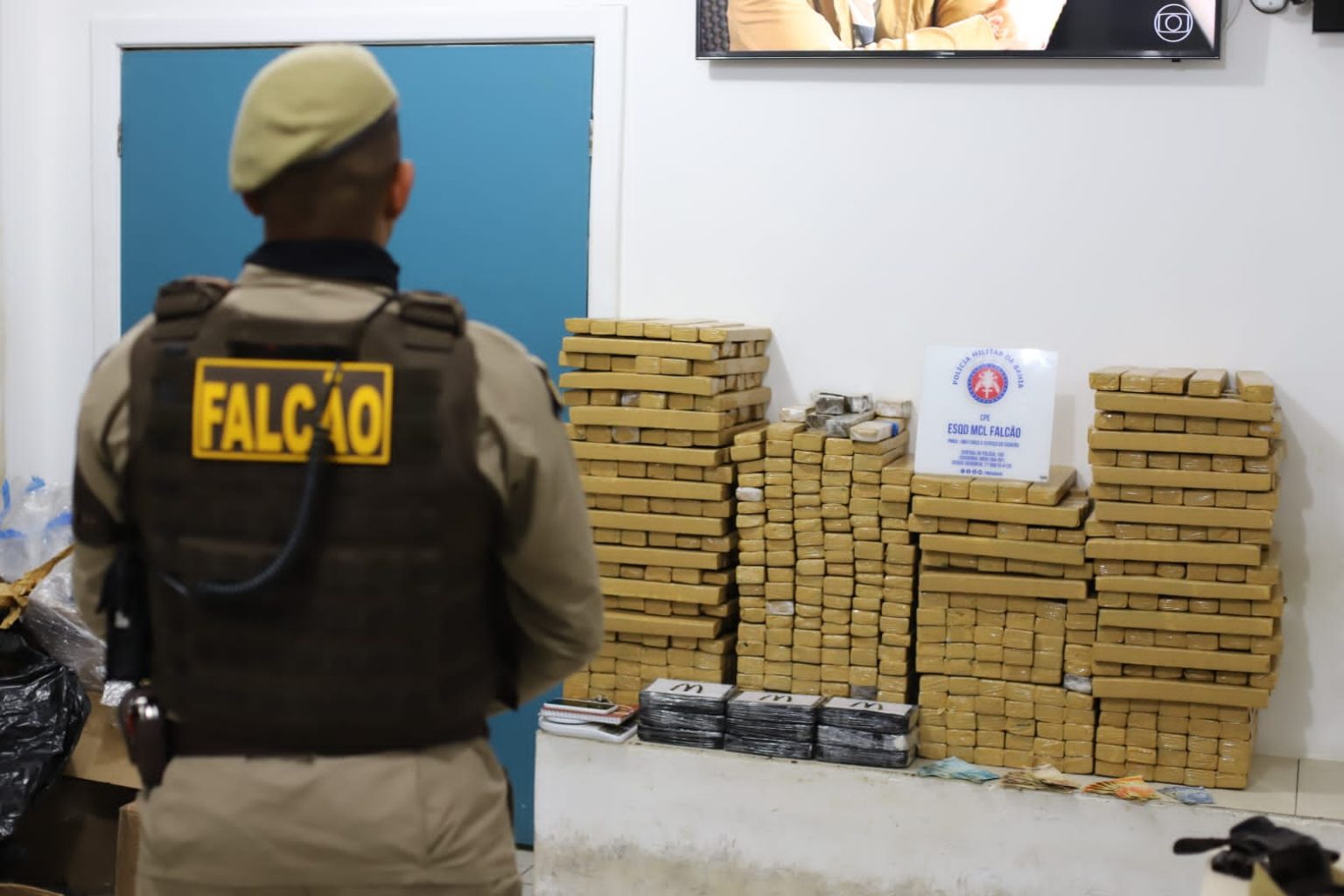 Tá Gostosinho! Militares do Esquadrão Falcão apreendem cerca de meia tonelada de drogas e prende Cu de Galinha que deu o leite.
