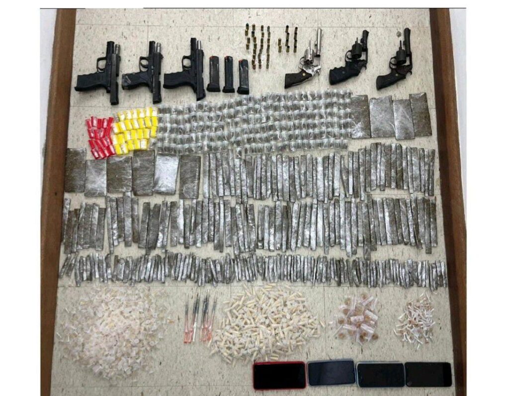 Os armamentos e as drogas foram localizados com os resistentes. Um policial militar acabou atingido de raspão.