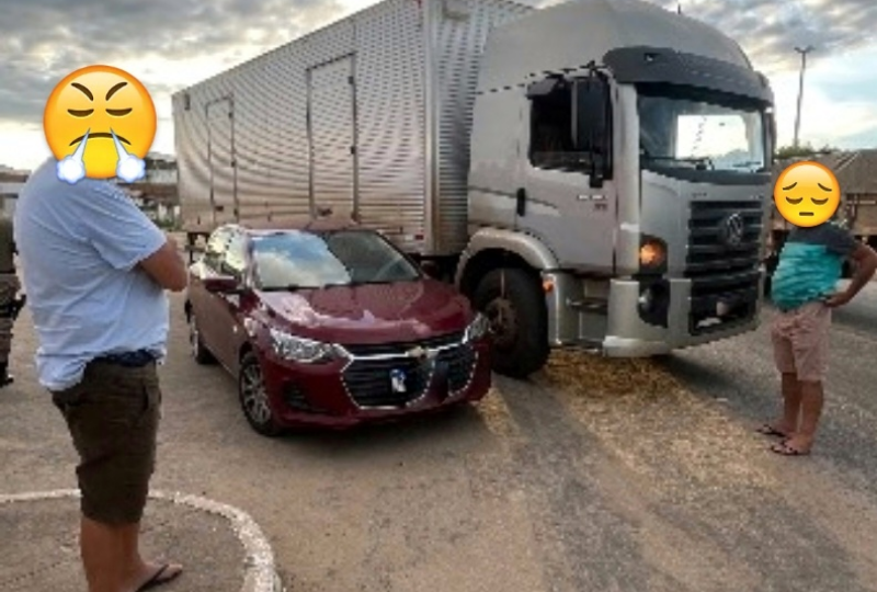 O caminhão ficou com avarias no lado direito, enquanto o carro teve danos no lado esquerdo e na parte traseira.