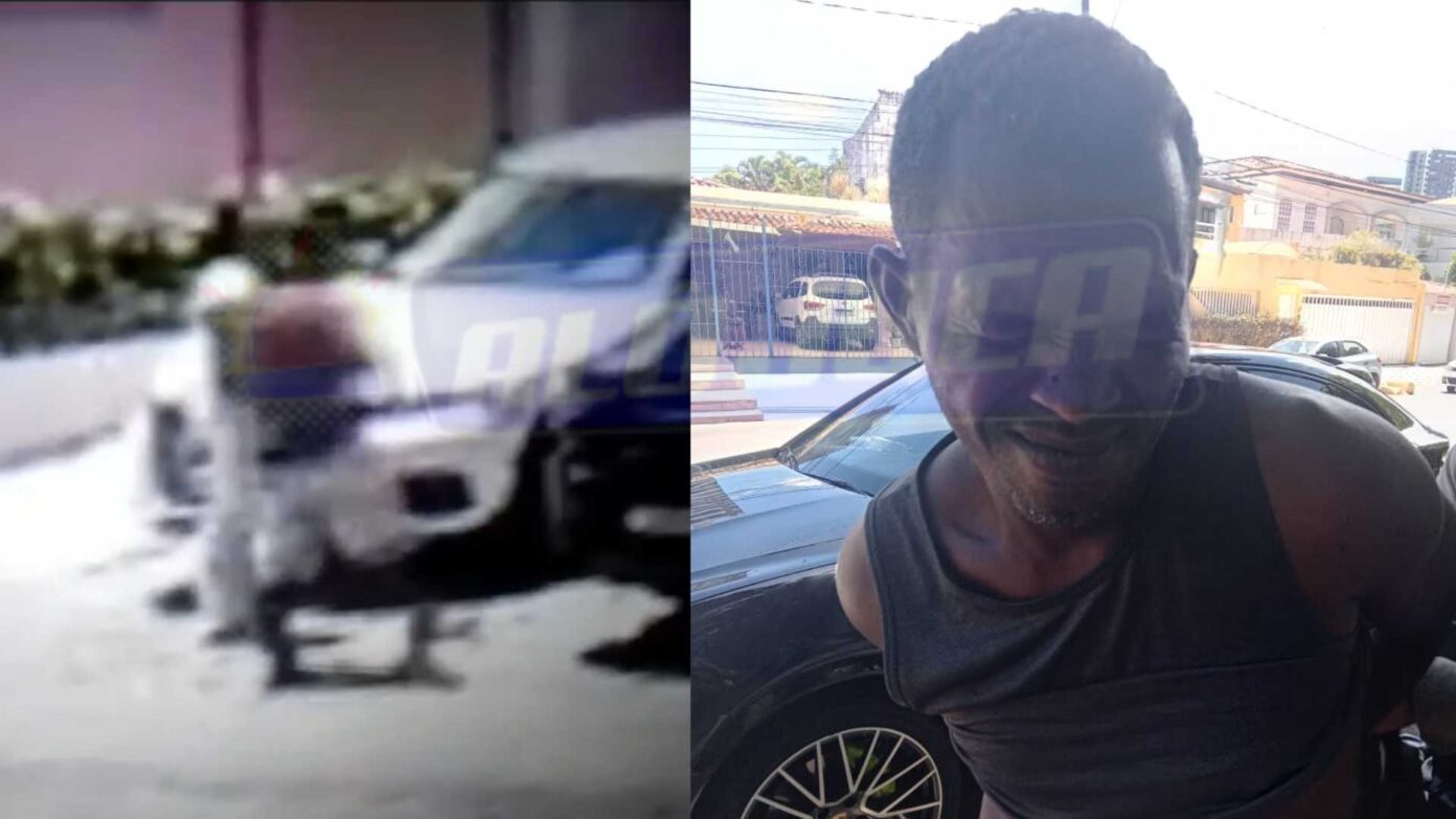 Um homem foi preso em flagrante pela equipe de segurança privada no bairro Caminho das Árvores, na tarde desta segunda-feira (18), após roubar um aparelho celular da marca IPhone. Uma câmera de segurança registrou o crime. Ele aborda duas mulheres que estavam saindo de uma loja e coloca a mão na cintura, simulando estar armado.