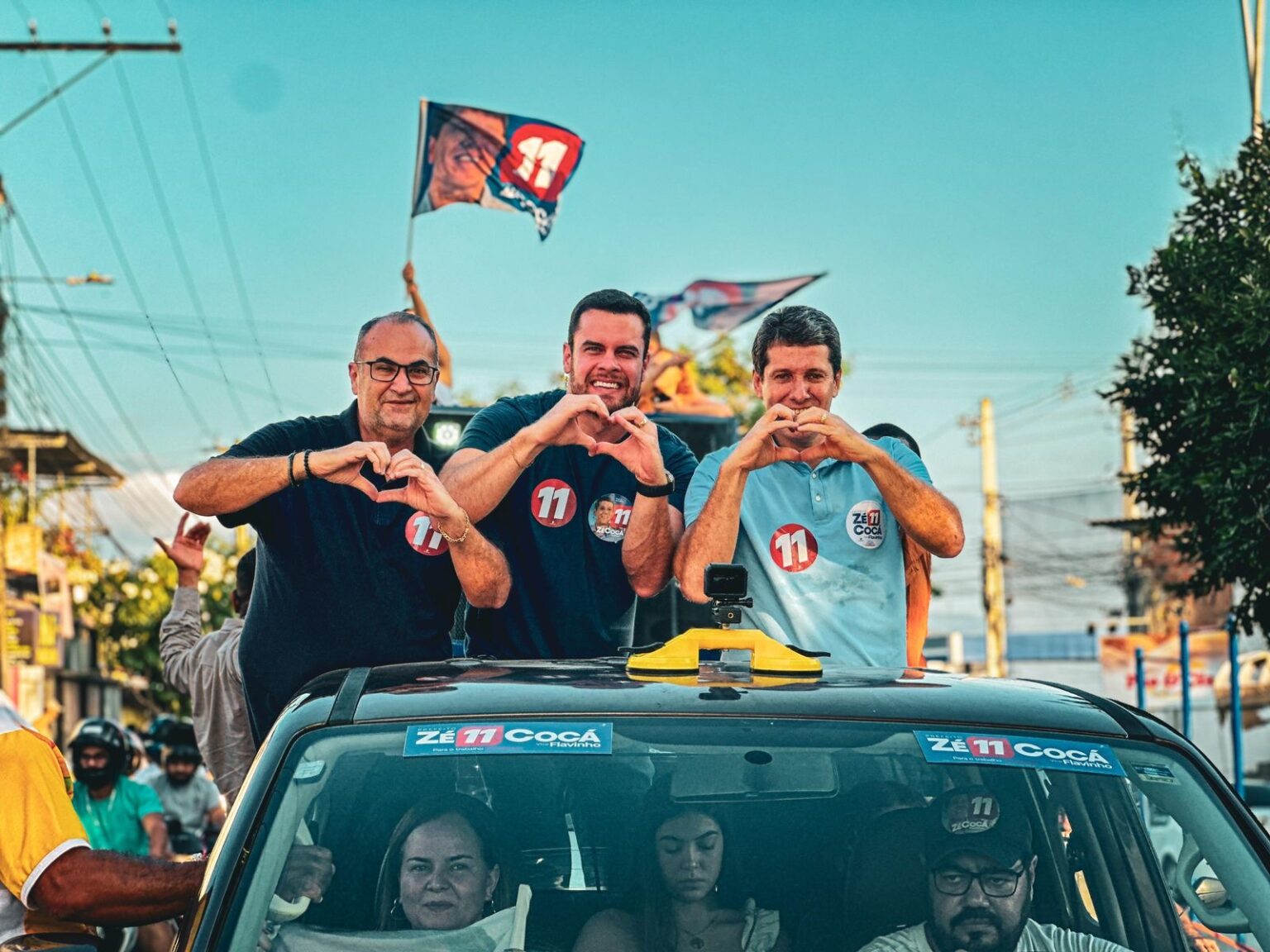 Comandada pelo candidato a reeleição, Zé Cocá, pelo candidato a vice-prefeito, Flavinho Santana, e pelo deputado estadual, Hassan Iossef, a carreata contou, ainda, com a participação dos candidatos ao Legislativo. Tendo como ponto de partida o estacionamento do Aeroporto Vicente Grilo, com os veículos decorados com bandeiras e adesivos de campanha, de lá seguiram por várias ruas e bairros, até chegar à Praça Nossa Senhora Aparecida, na Cidade Nova.
